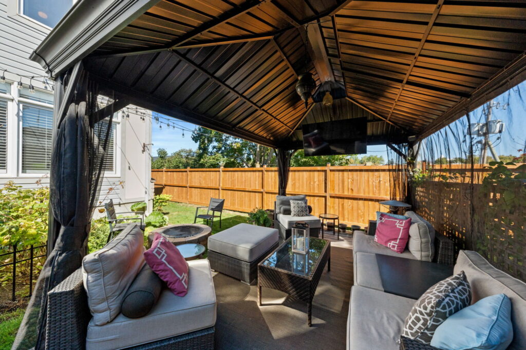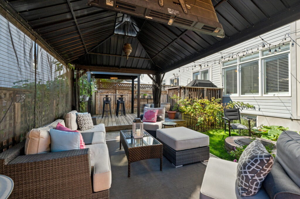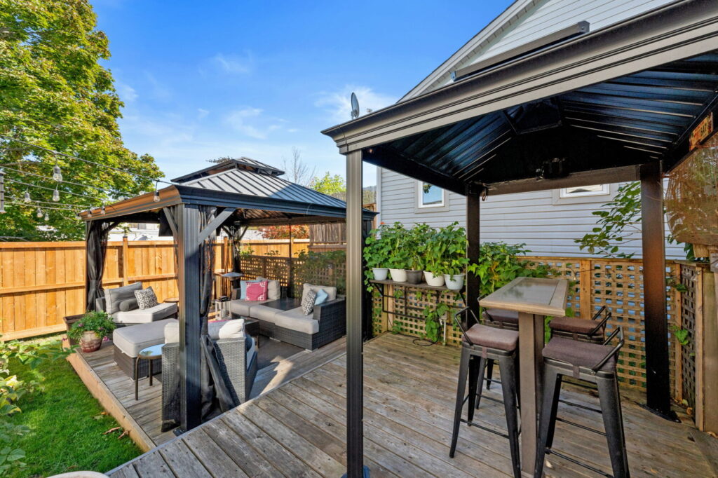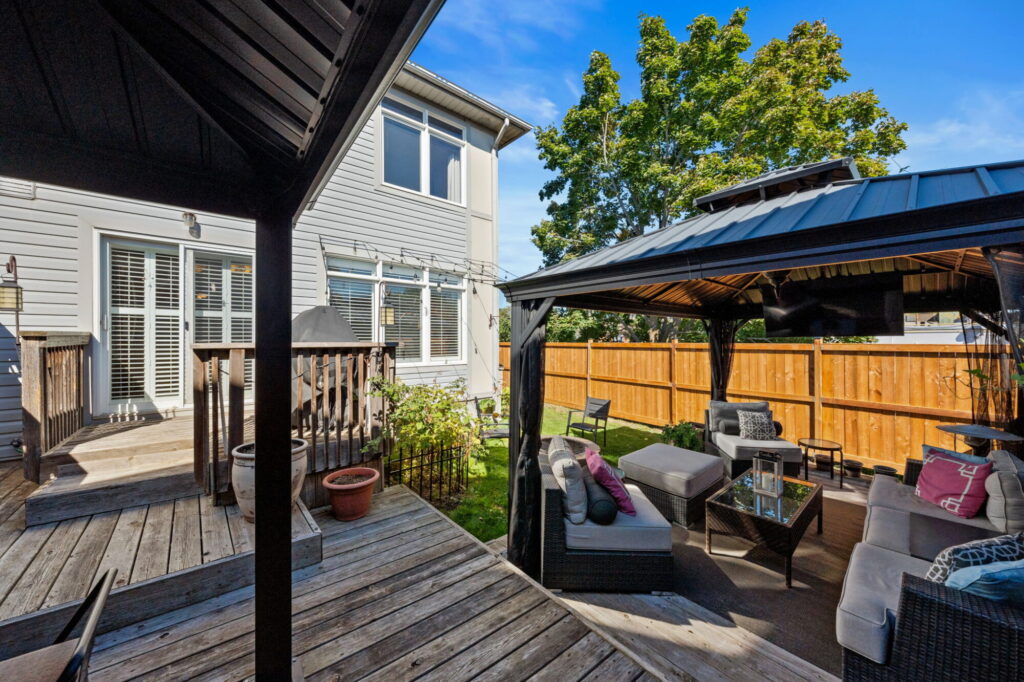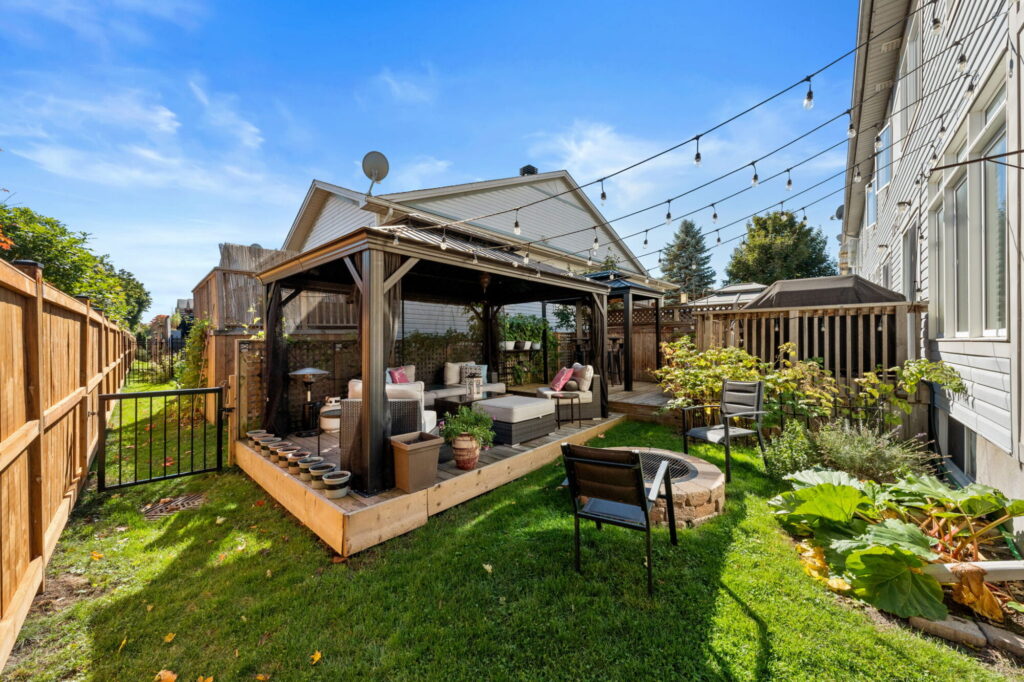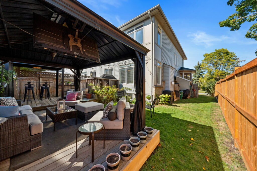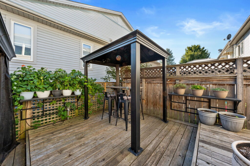 Step outside to a fully fenced backyard that feels like a private retreat. A custom four-tier deck offers multiple zones to BBQ, lounge with friends, watch TV, or enjoy a drink at the bar. With mature landscaping and a peaceful setting, this outdoor space is made for summer living.