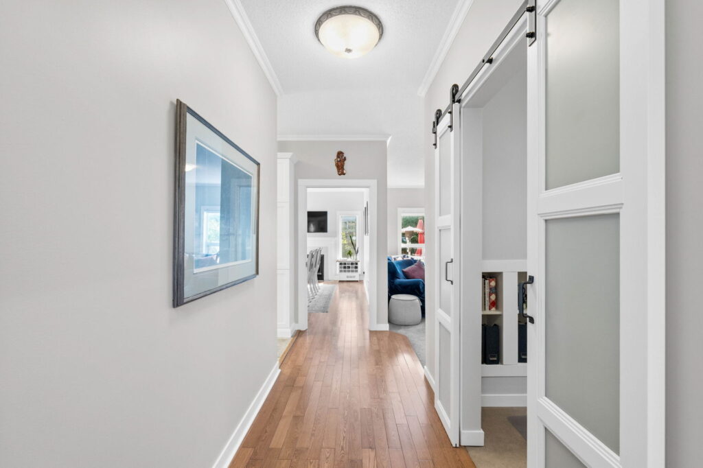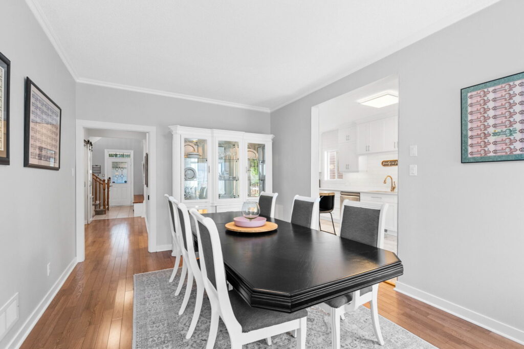 - Hardwood flooring throughout main level - Seamless flow with soaring ceilings and crown mouldings