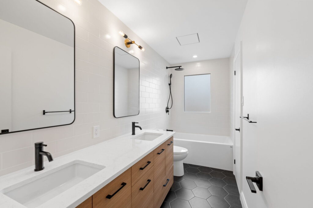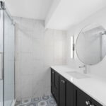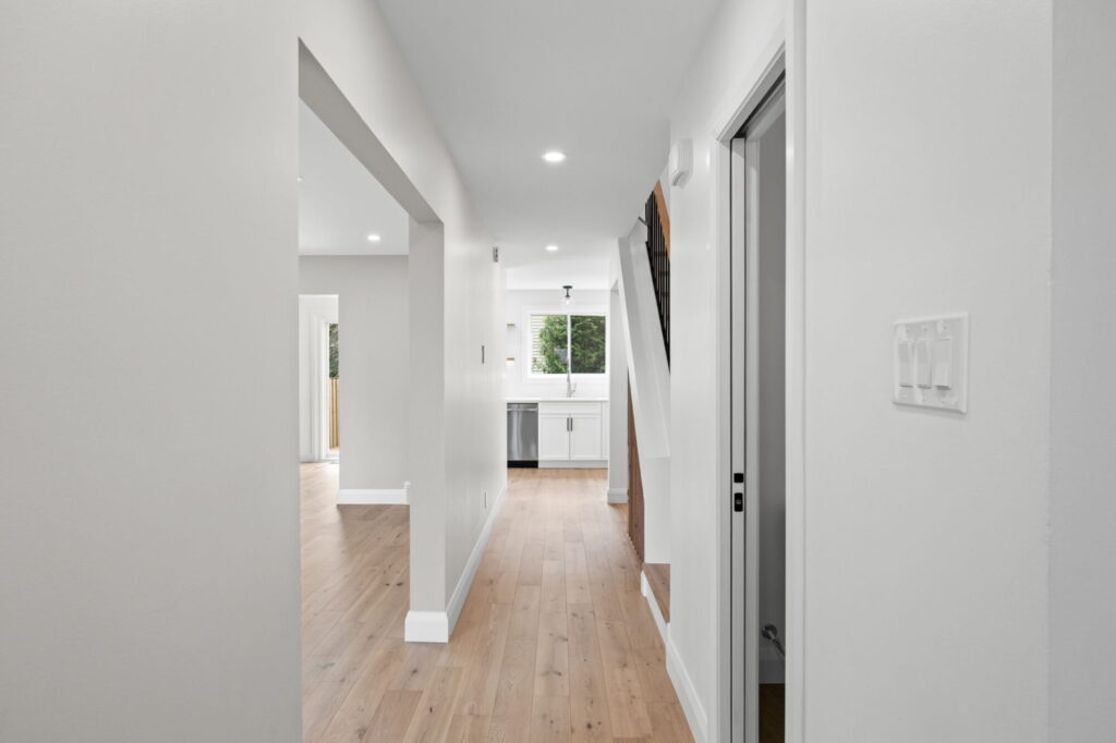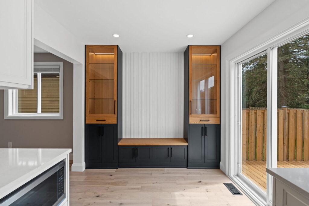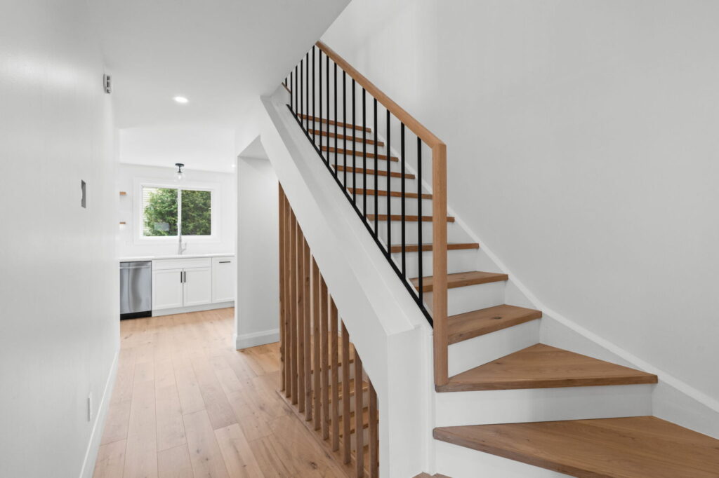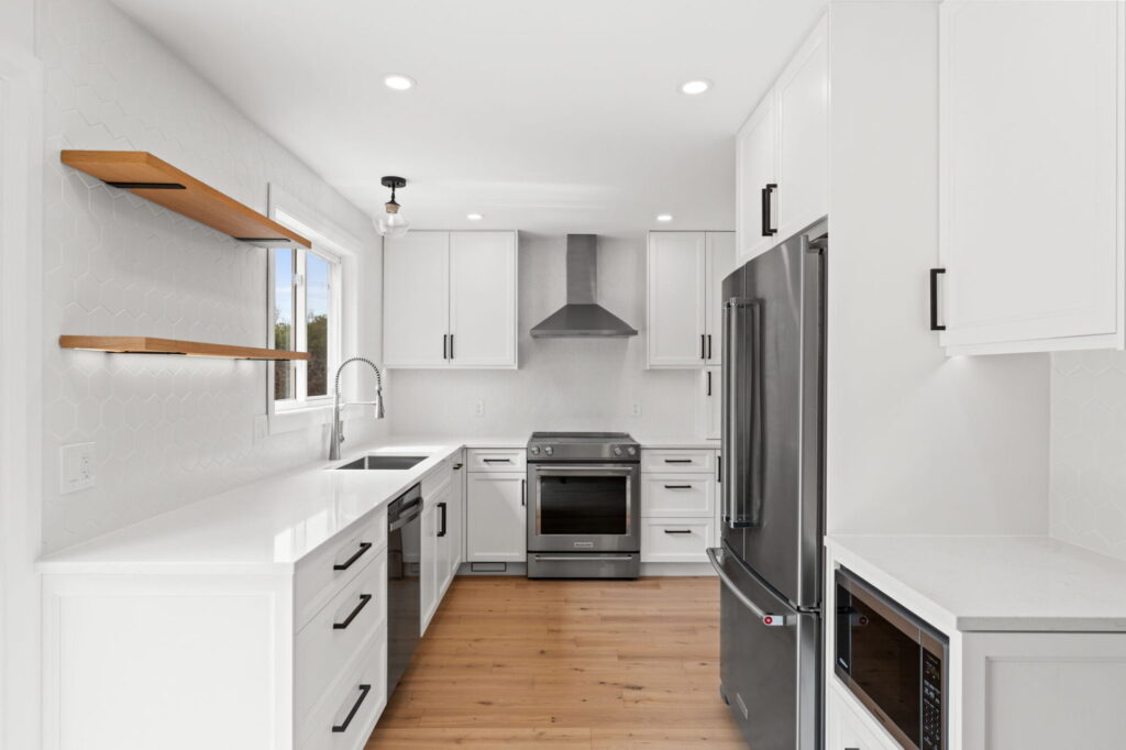 The heart of the home lies in the fully redesigned kitchen, where white quartz countertops, a sleek tiled backsplash, and large soft-close drawers are paired with ample custom cabinetry and built-in storage in the eating area. Whether you’re hosting or cooking nightly dinners, the kitchen delivers with premium appliances, a deep stainless steel basin sink, and a tall gooseneck faucet, providing both beauty and everyday functionality.