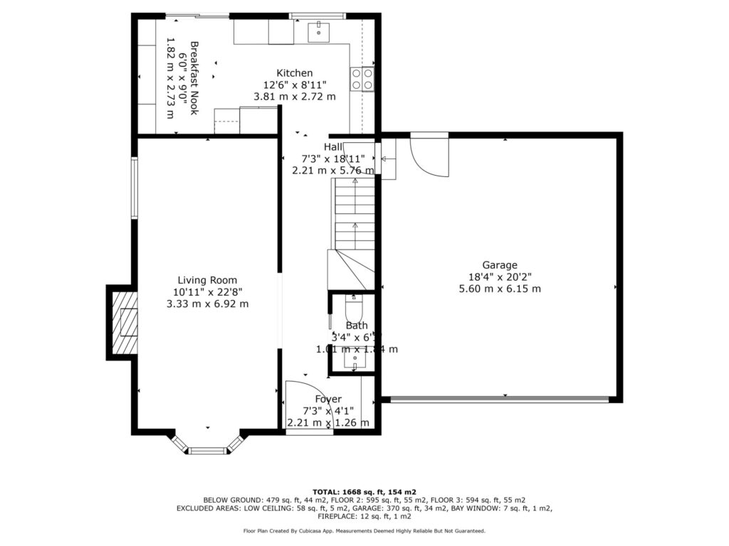 The bright and inviting living room features a large bay window and a brand new gas fireplace finished in eye-catching patterned tile with a white mantle surround—offering warmth and a timeless design feature. Custom lighting, including pot lights with dimmers, is thoughtfully installed throughout, allowing you to set the perfect ambiance from morning to evening.