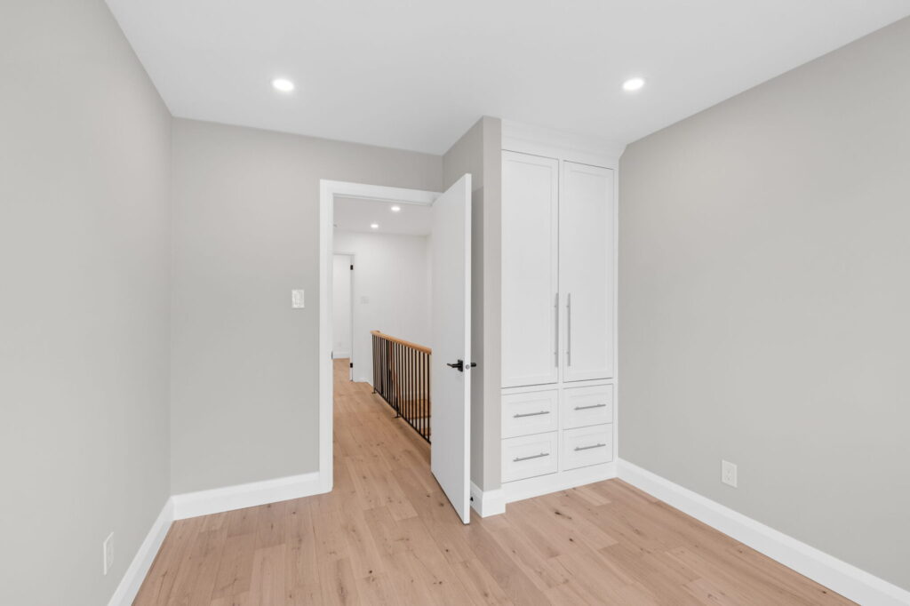 Upstairs, you’ll find a spacious primary bedroom with private access to the updated main bathroom featuring modern fixtures and finishes. Two additional bright and updated bedrooms complete the second level, each with custom built-in closets and drawers to maximize storage without sacrificing design.
