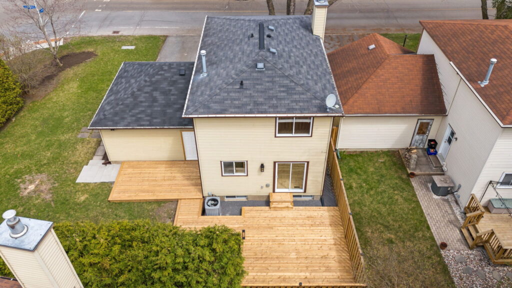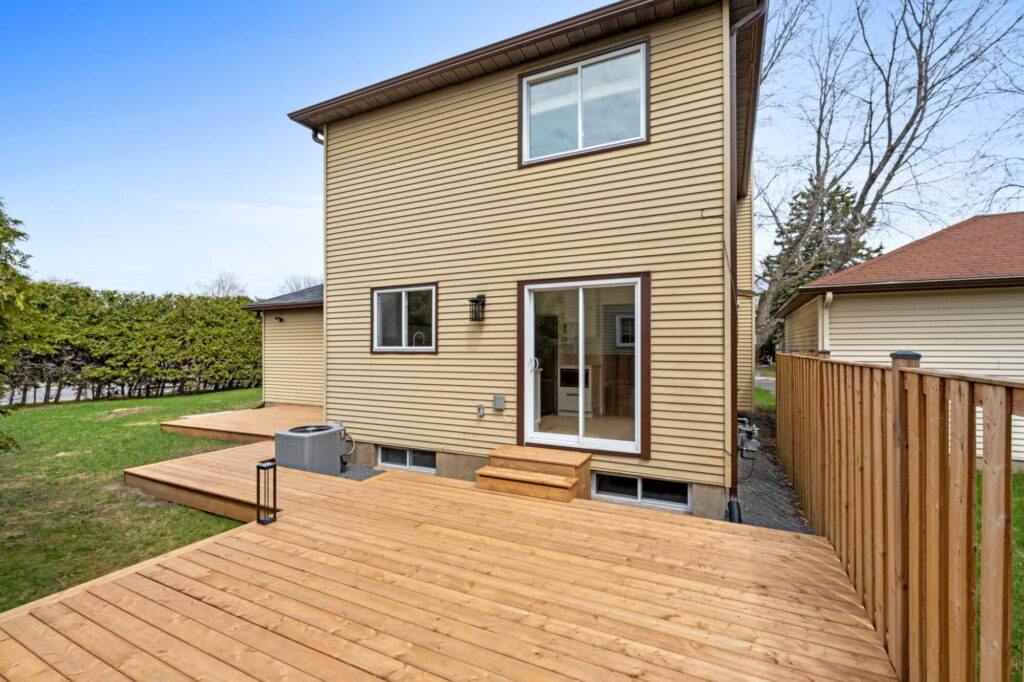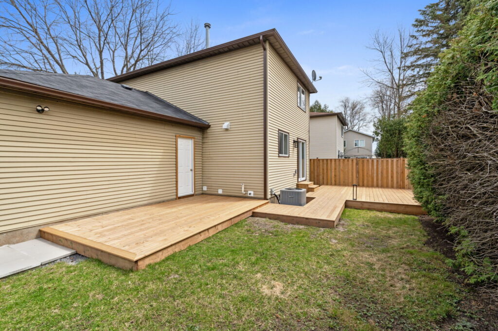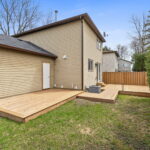 The backyard is a true extension of the home, offering a brand new wraparound deck—perfect for summer gatherings or quiet mornings. A new fence provides added privacy, while mature trees create a tranquil outdoor setting.
