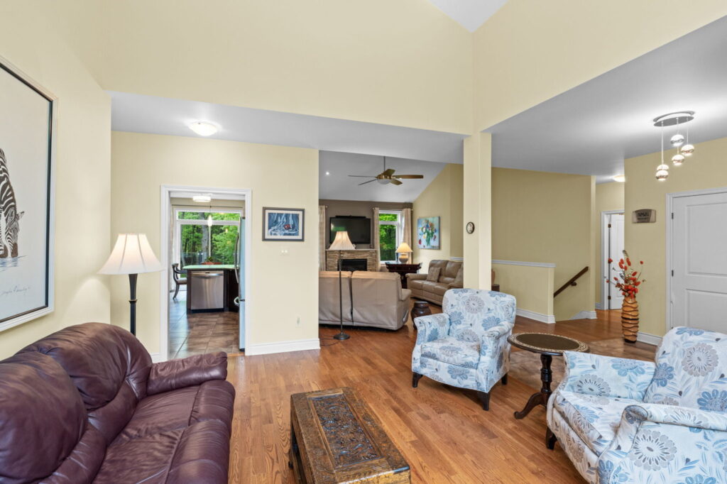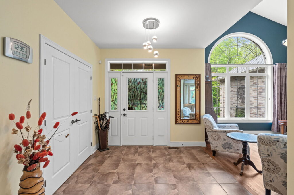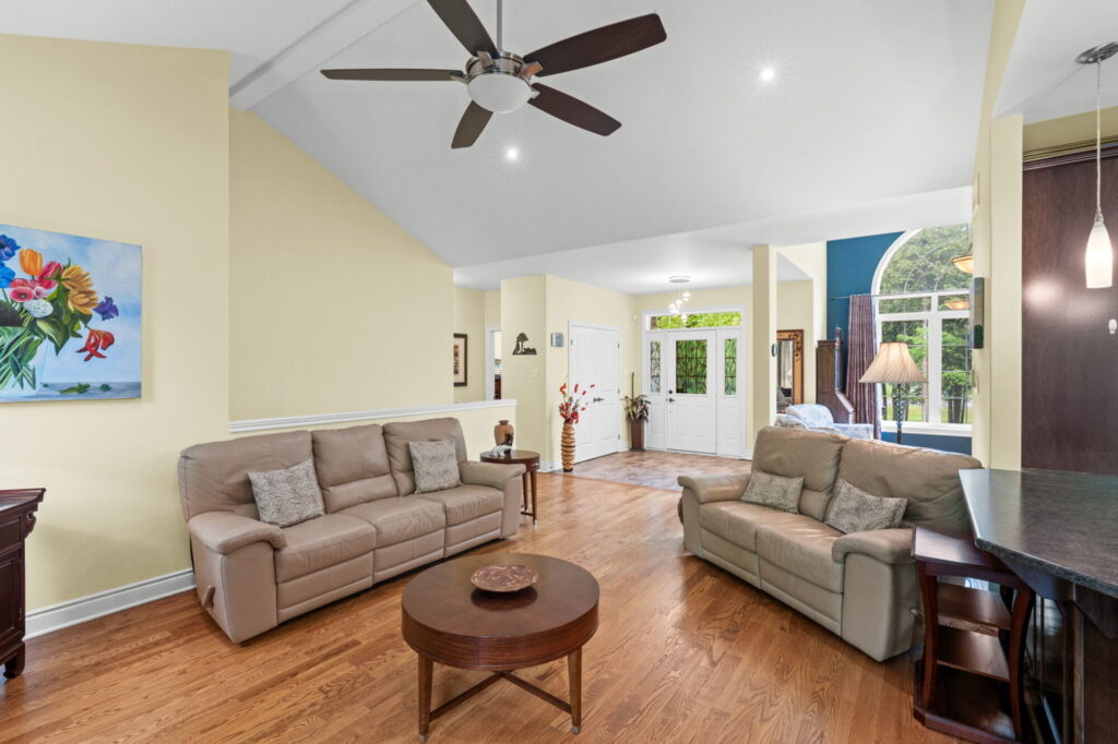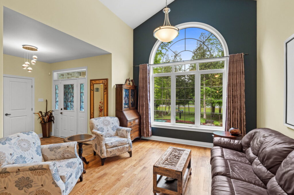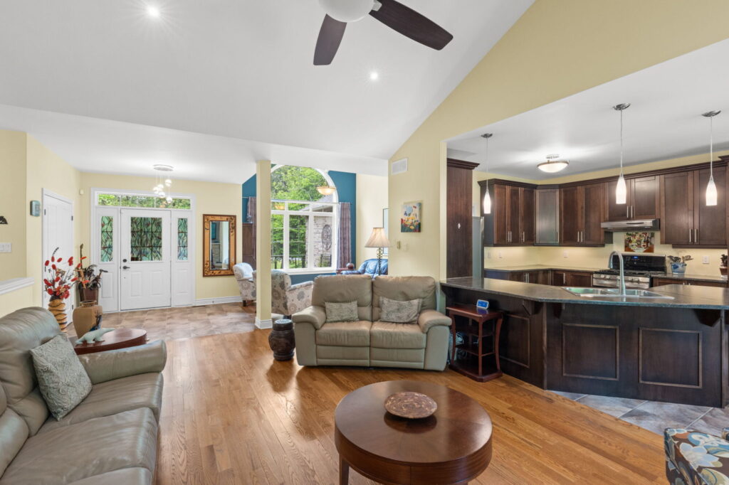 Step into the spacious foyer and take in the soaring 15-foot vaulted and cathedral ceilings, with natural light streaming through an elegant arched window. The open-concept design seamlessly connects the living, dining, and kitchen areas — perfect for families or entertaining guests.