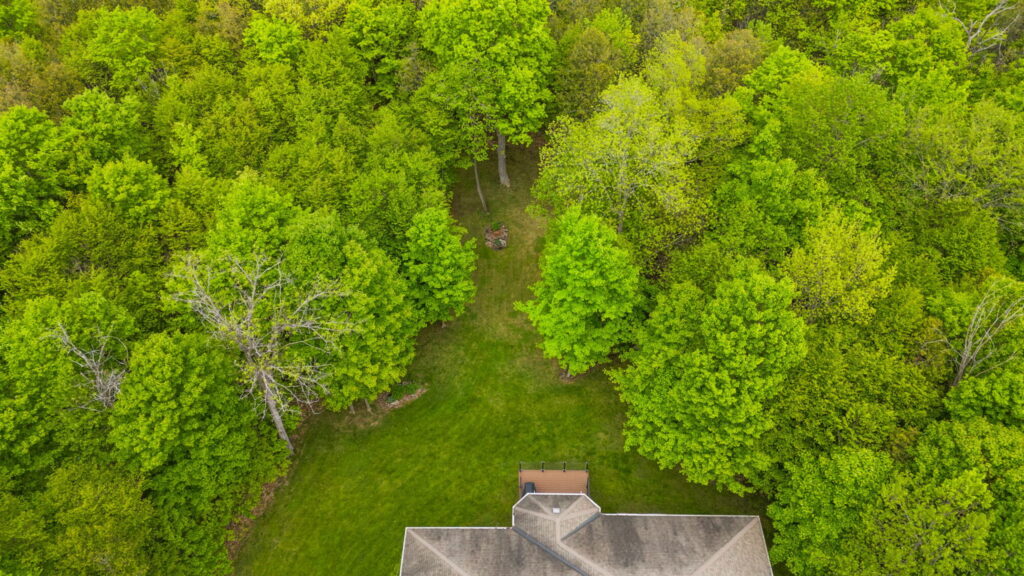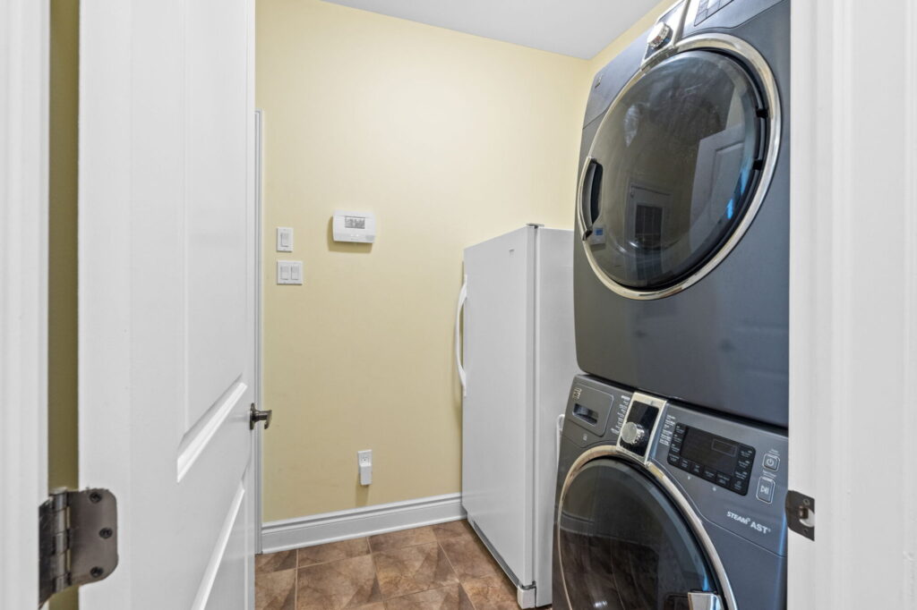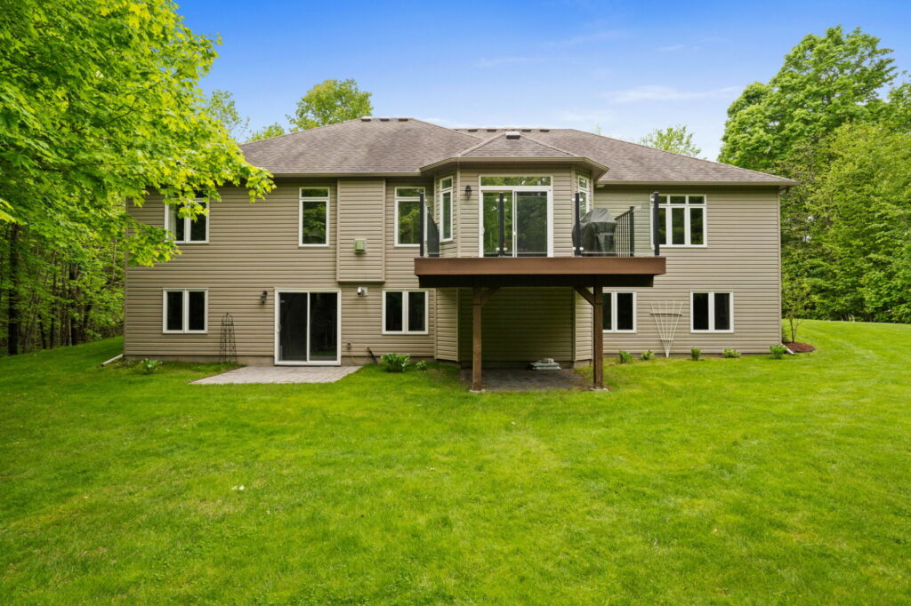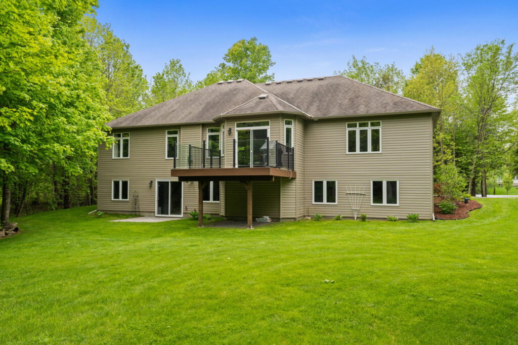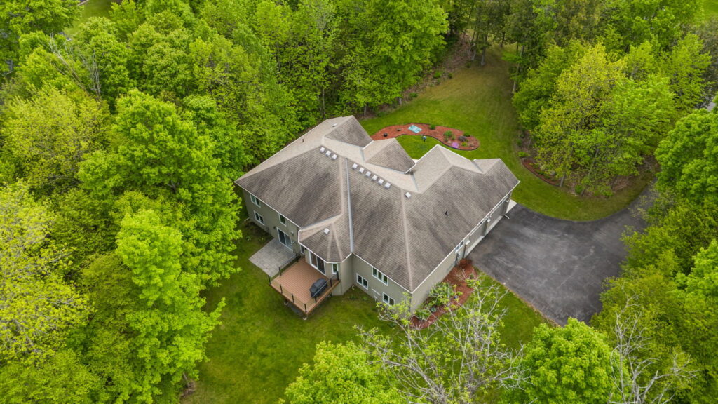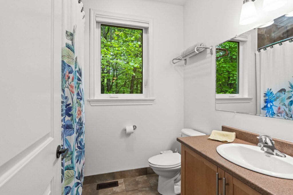 The chef’s kitchen is a dream: abundant counter space, stainless steel appliances, a gas stove, breakfast bar, pendant lighting, and ample cabinetry for all your storage needs. Just off the kitchen, step onto a large deck that overlooks the expansive backyard and tranquil forest — the ideal spot for morning coffee or evening relaxation.