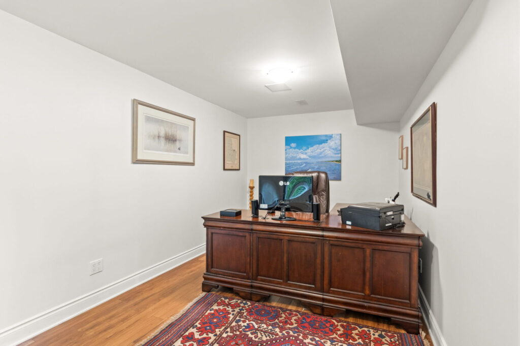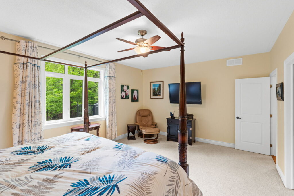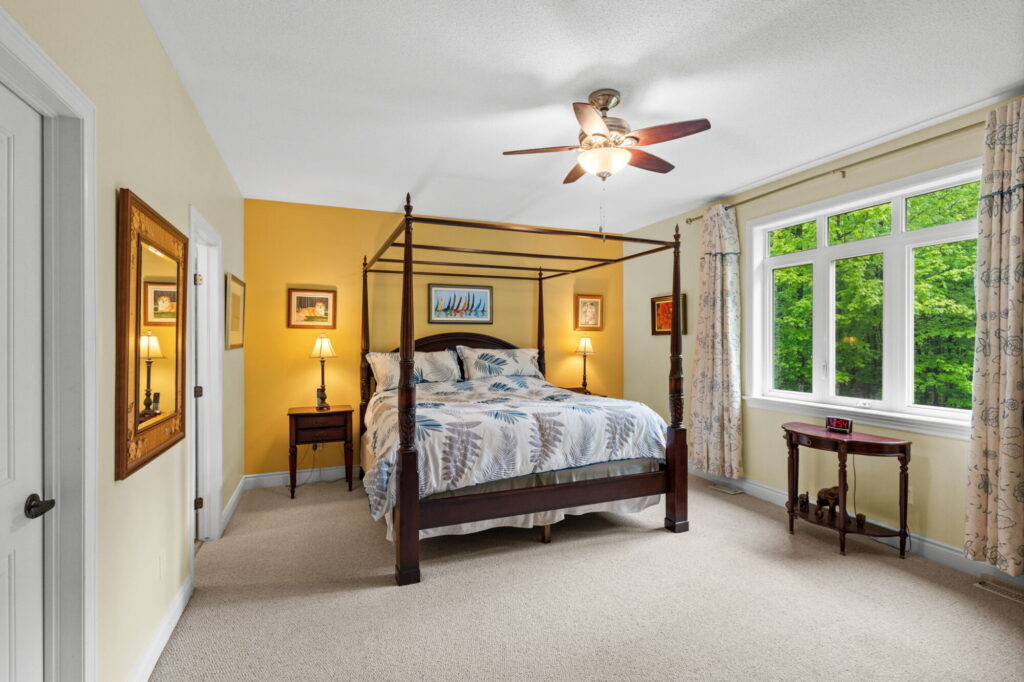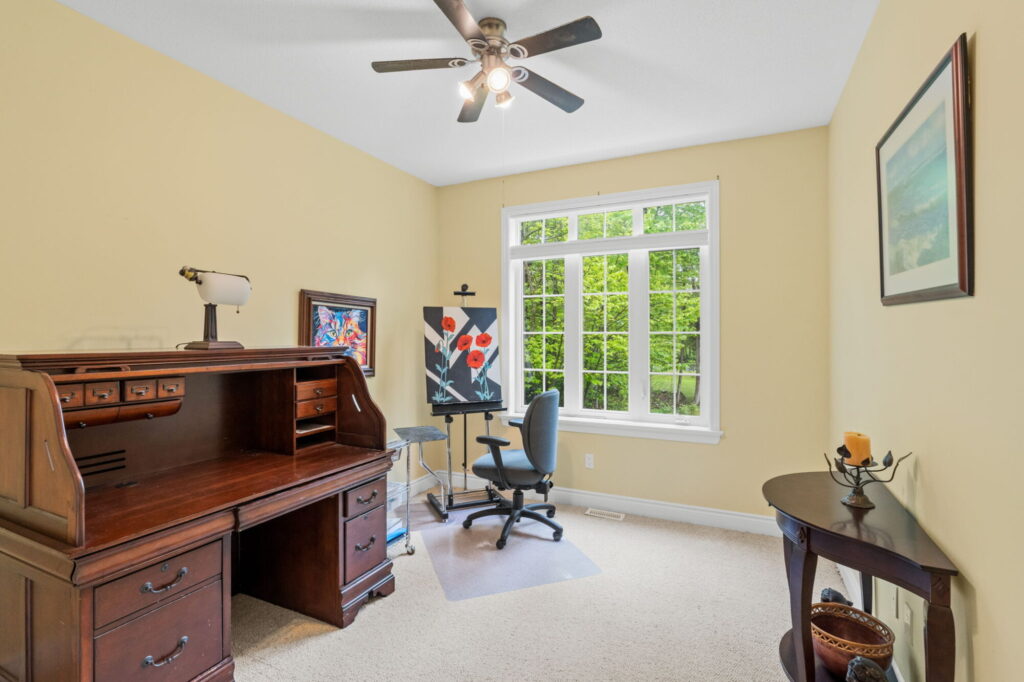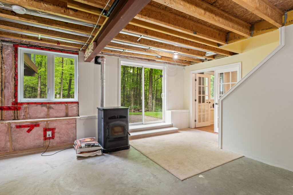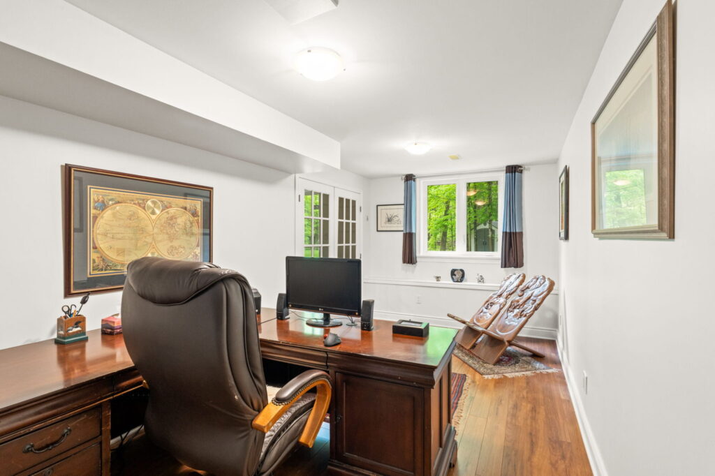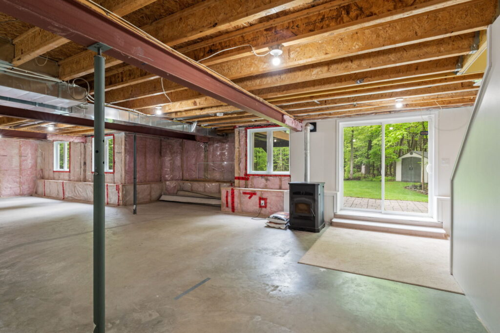 Downstairs, the massive walkout basement is filled with natural light. A large finished room with French doors makes an ideal office or bedroom, complete with a pellet stove for added ambiance. There’s also plenty of space for storage, a home gym, or future customization.