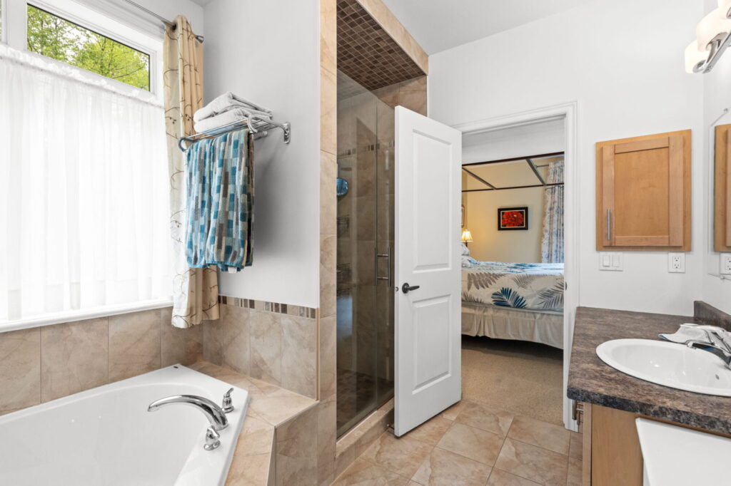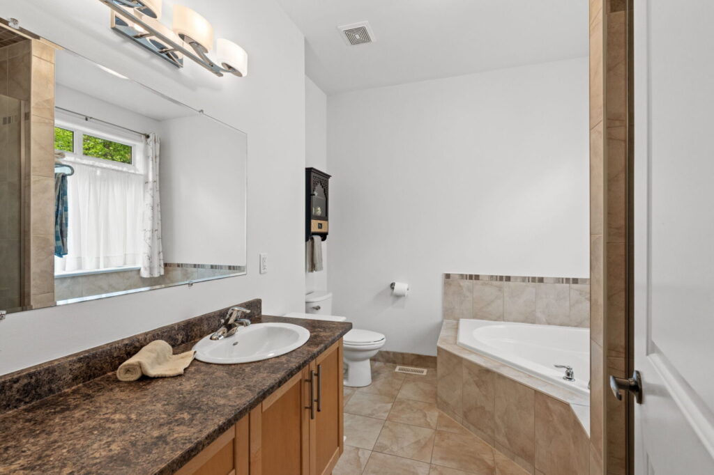 - Primary bedroom with 4-piece ensuite Corner soaker tub Tiled & glass shower