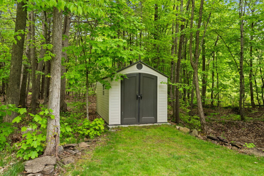Outside, the manicured backyard features an irrigation system, mature flower beds, vegetable gardens, a storage shed, and peaceful forest views. Enjoy visits from local deer and the calming quiet of nature — all while being close to shopping, restaurants, and walking trails.