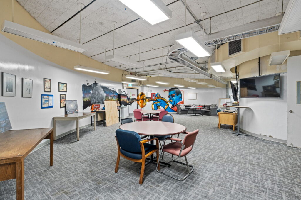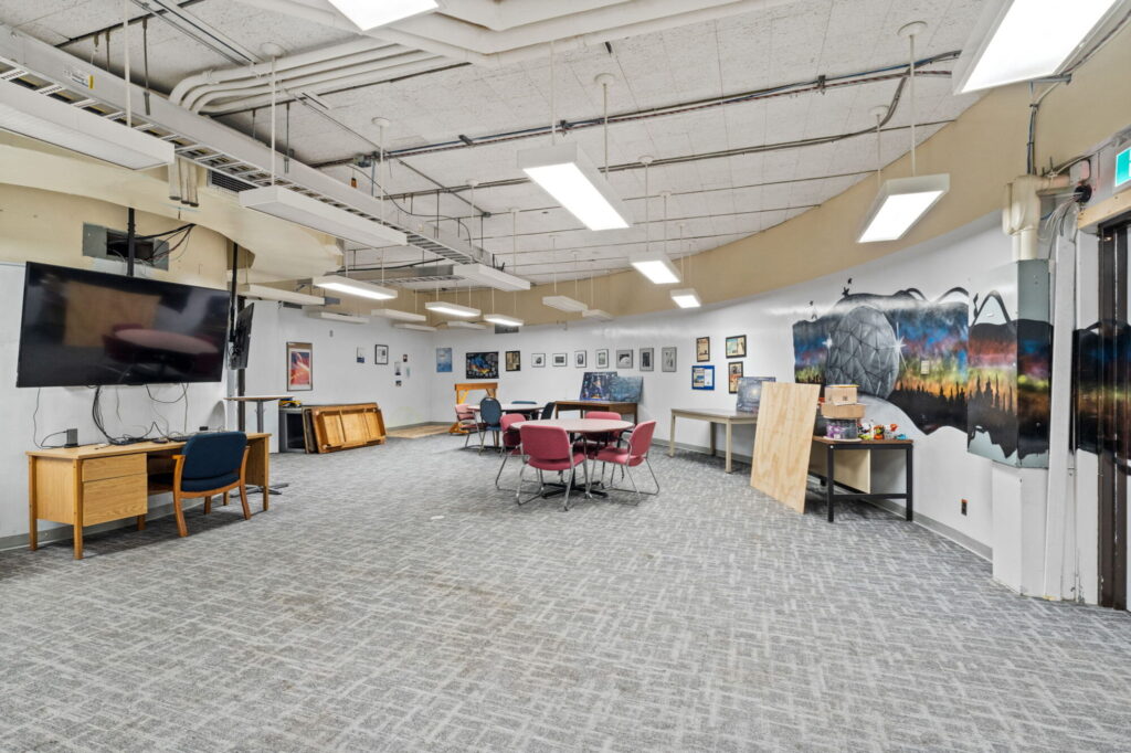 Fully updated and currently home to multiple commercial tenants, workshops, classrooms, and event spaces, this building offers immense versatility and functionality. The interior includes various office and meeting spaces, large presentation rooms, washrooms, and a fully equipped kitchenette — making it ideal for a range of commercial uses including tech, trades, research, education, or institutional operations.