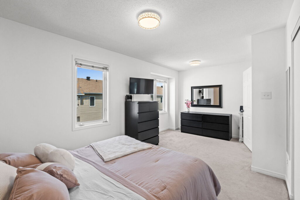 - Spacious primary bedroom with ensuite and custom blinds throughout.