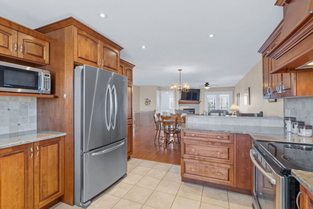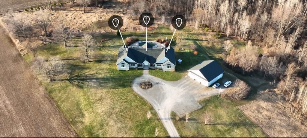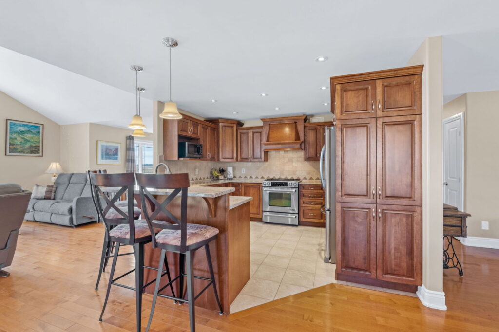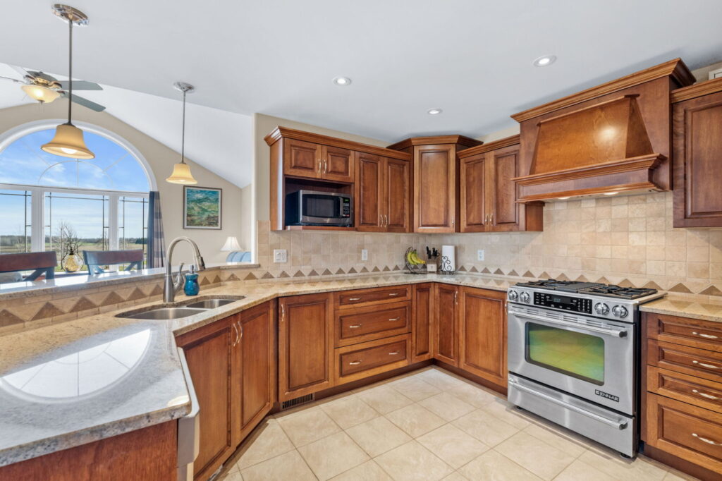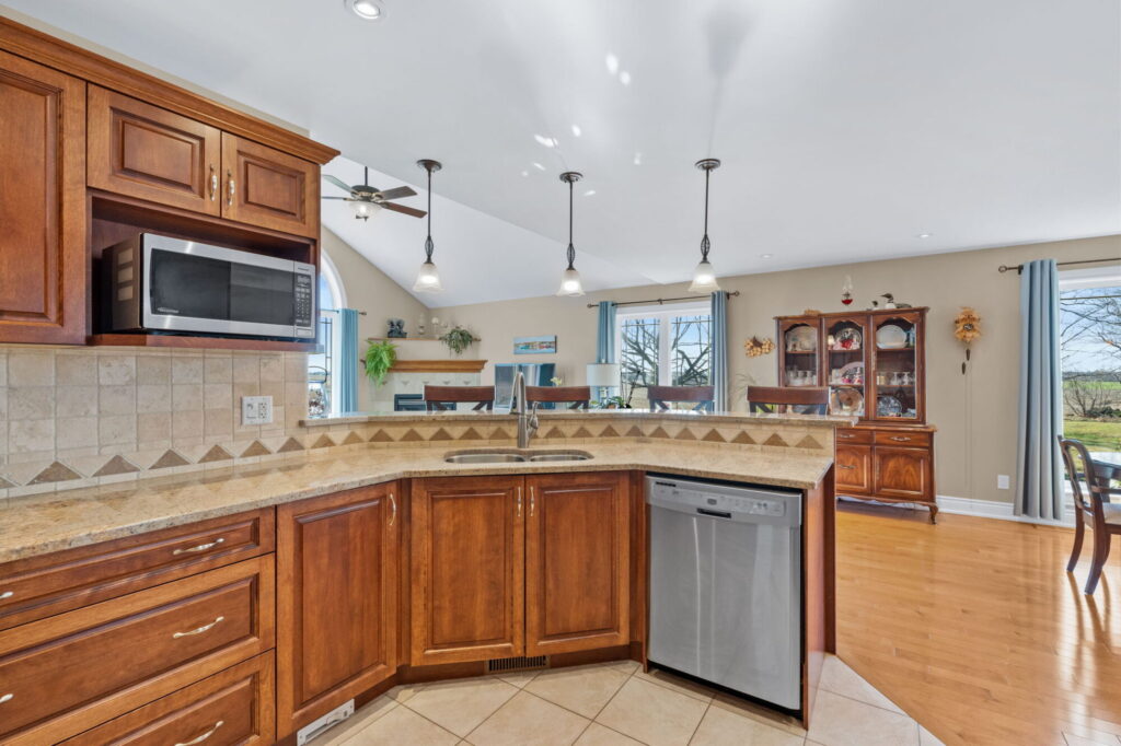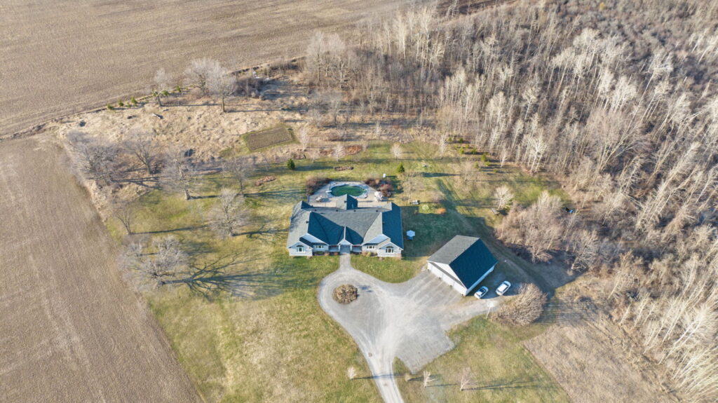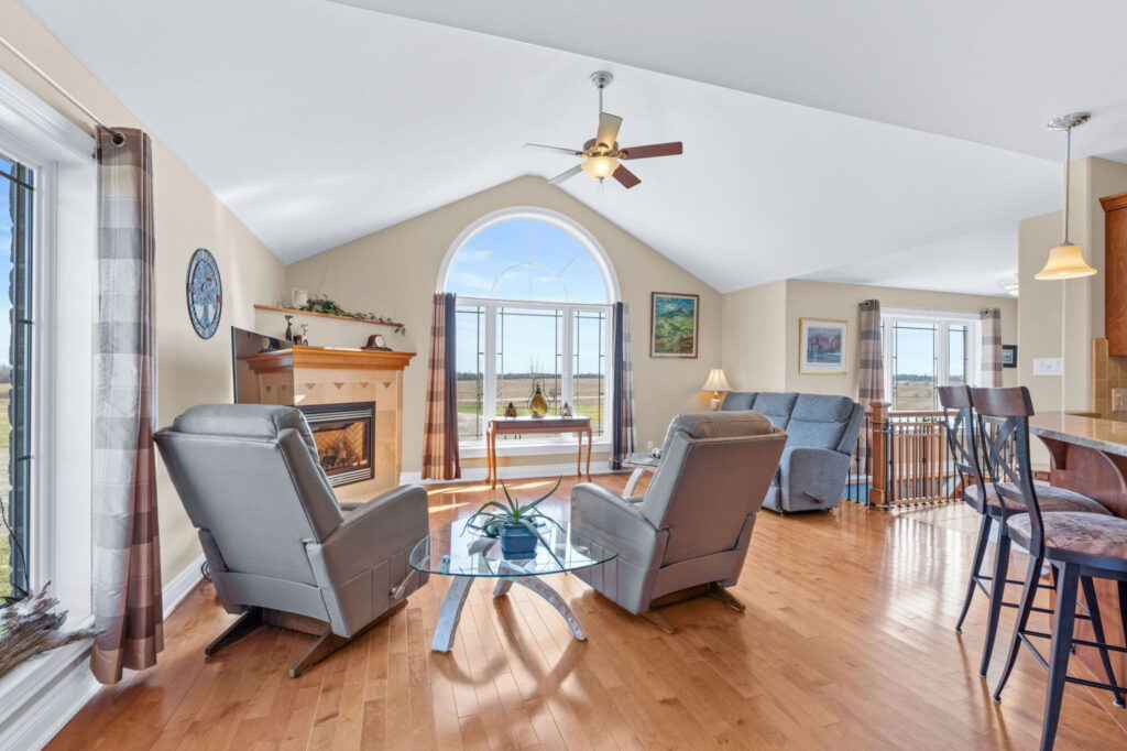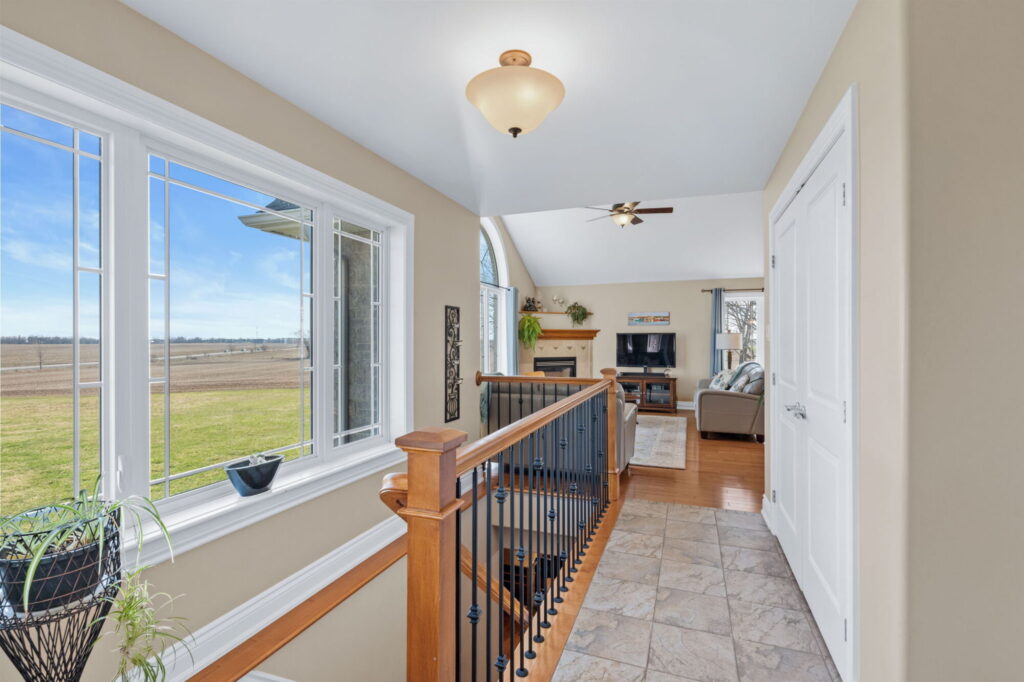 This exceptional executive bungalow is perched atop a hill, offering panoramic views of fields and forest on 4 acres of landscaped land (pending severance). Rarely offered, this stunning home was thoughtfully designed for multi-generational living, featuring three fully separate living spaces under one roof—a unique and versatile opportunity for extended families, guests, or potential rental options.