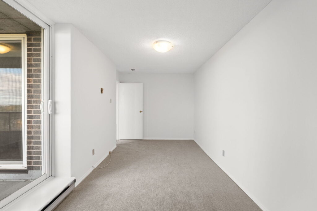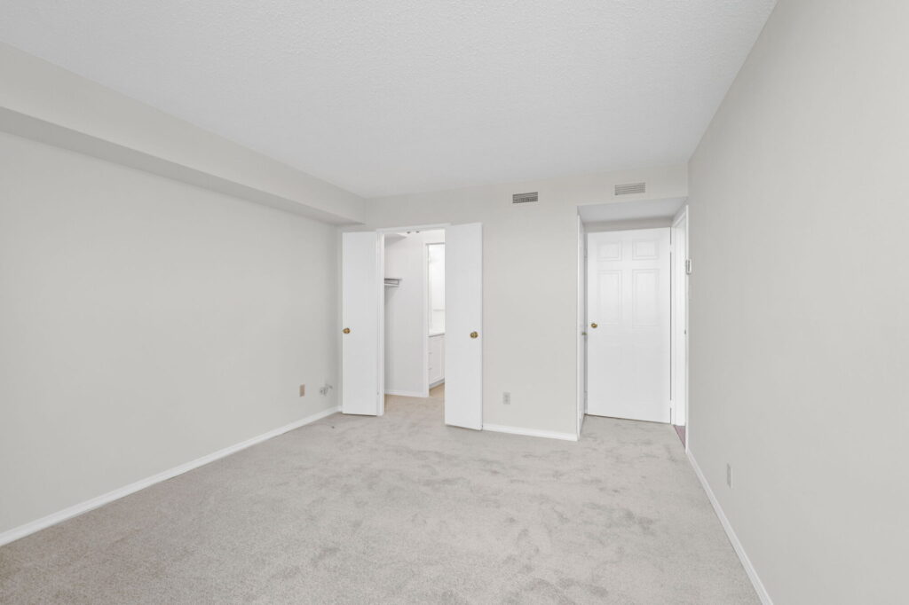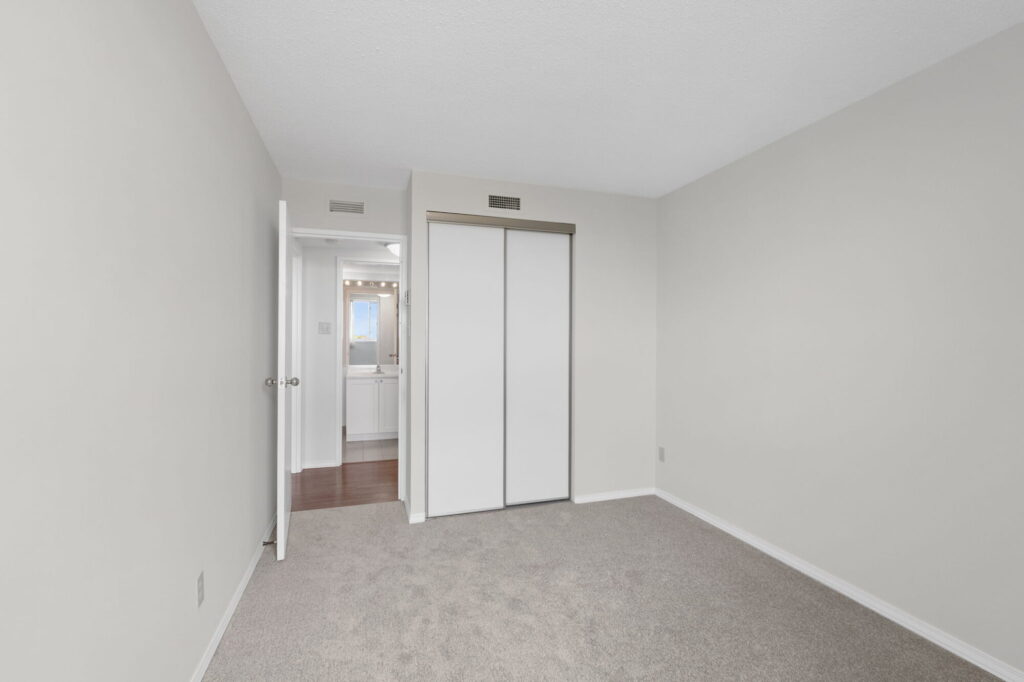 The third bedroom provides flexibility as a bedroom, den, or home office — perfect for remote work or a quiet reading space — and includes its own walk-in closet and patio door access to the balcony.