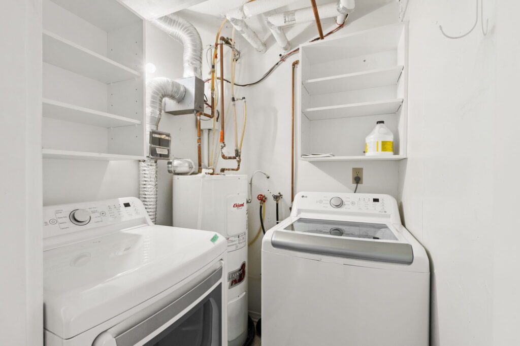 In-unit laundry, a utility closet, and newer appliances including washer, dryer, and stove (2025) complete this thoughtfully designed space.