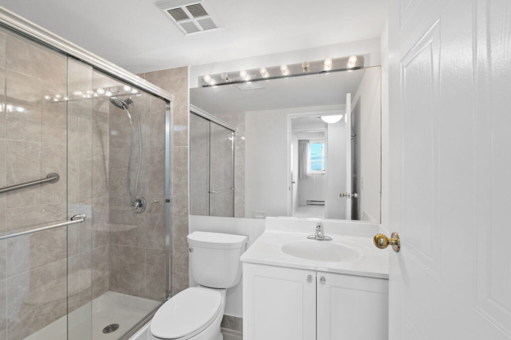 The spacious primary bedroom offers a walk-in closet and a private 4-piece ensuite with a tub and shower combo. The main bathroom has also been updated and features a stylish 3-piece design with a tiled stand-up shower.