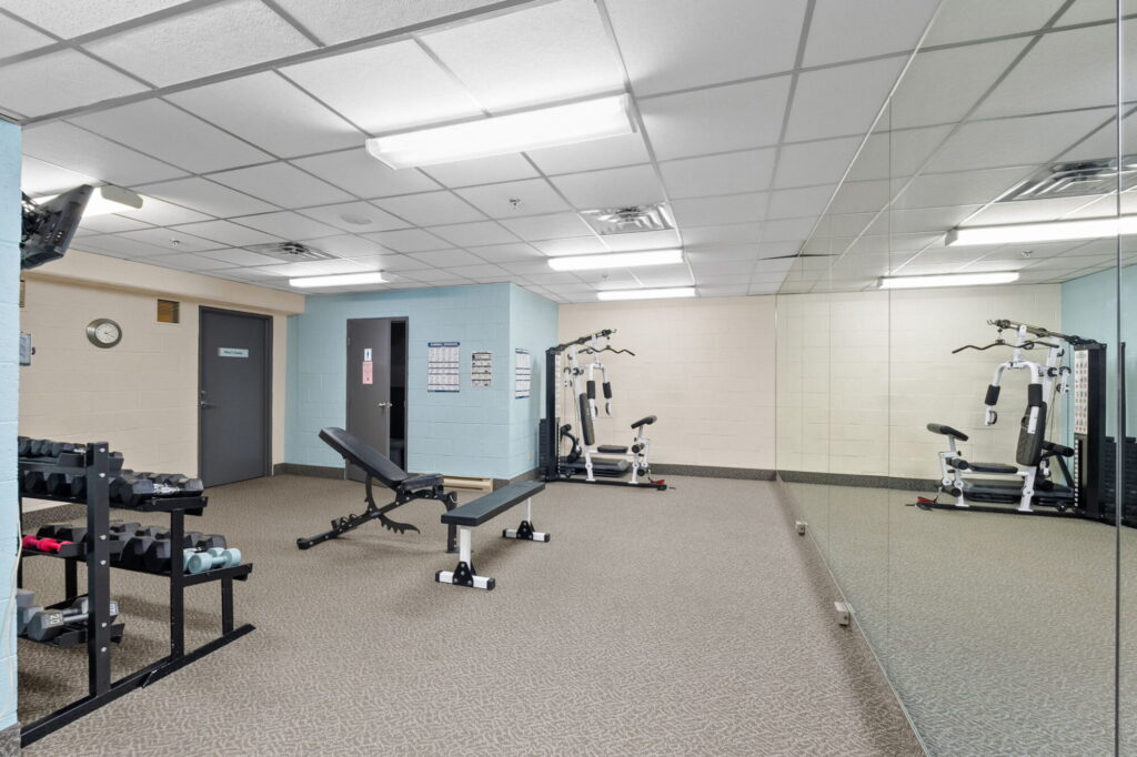 Residents enjoy access to outstanding amenities including a sauna, exercise centre, party room, games room, guest suites, and more. The unit also includes a storage locker (#145), one parking space (#43), visitor parking, and a workshop for hobby enthusiasts.